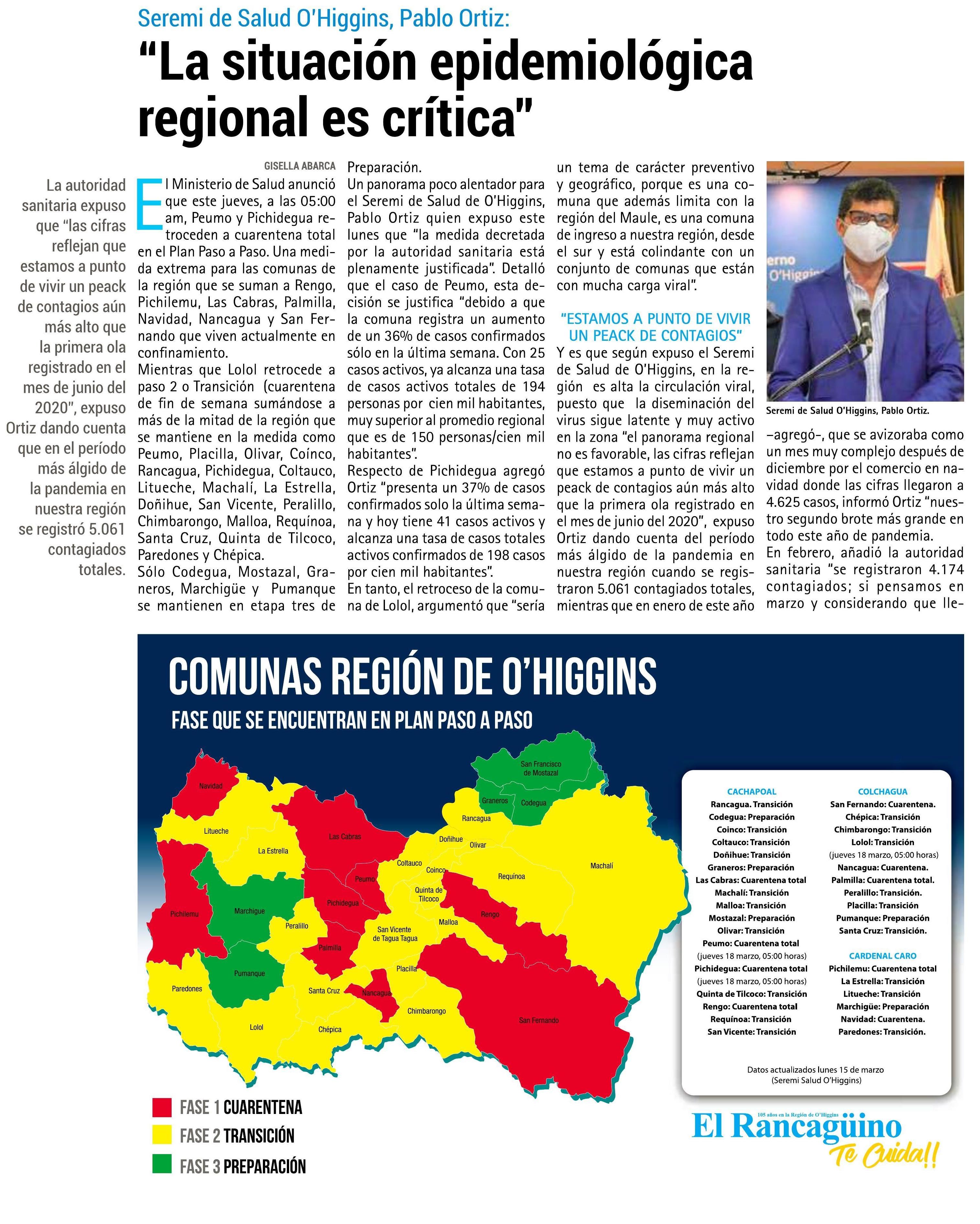 La alta tasa de contagios obligó a mantener el confinamiento en Graneros Machalí y Rancagua. 37407 likes 1514 talking about this 28052 were here. Fases de la Región de Libertador General Bernardo OHiggins.